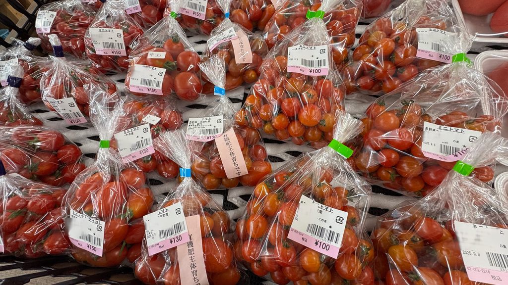 野菜の直売所では、地域の高齢者が卸す作物が100円前後で売られている。